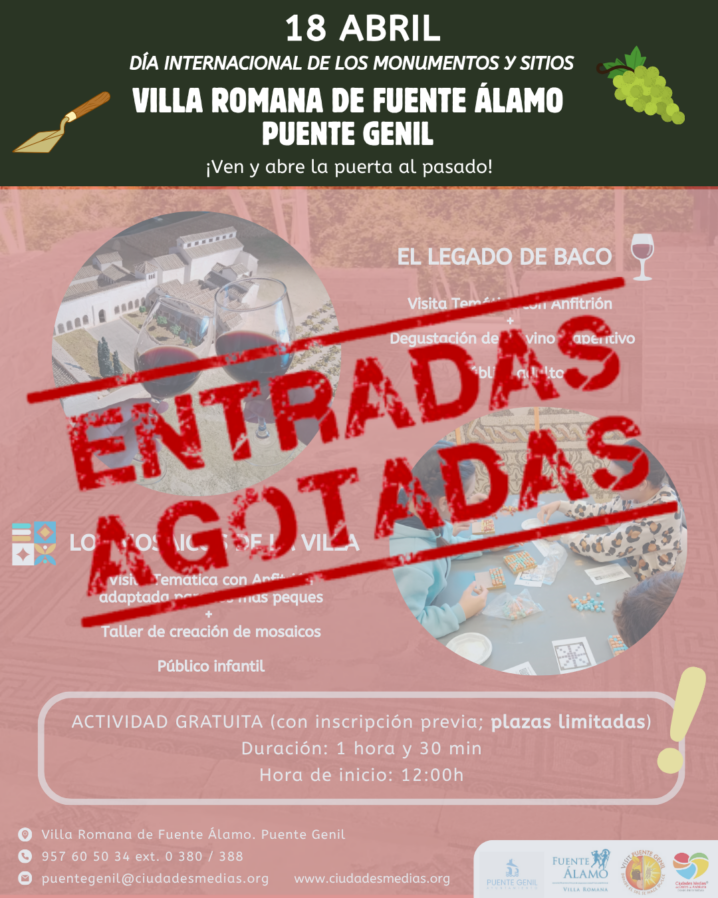 Celebrate with us April 18th in Puente Genil with themed tours, Roman mosaics, and wine tasting at the Fuente Álamo Roman Villa. Free activity!