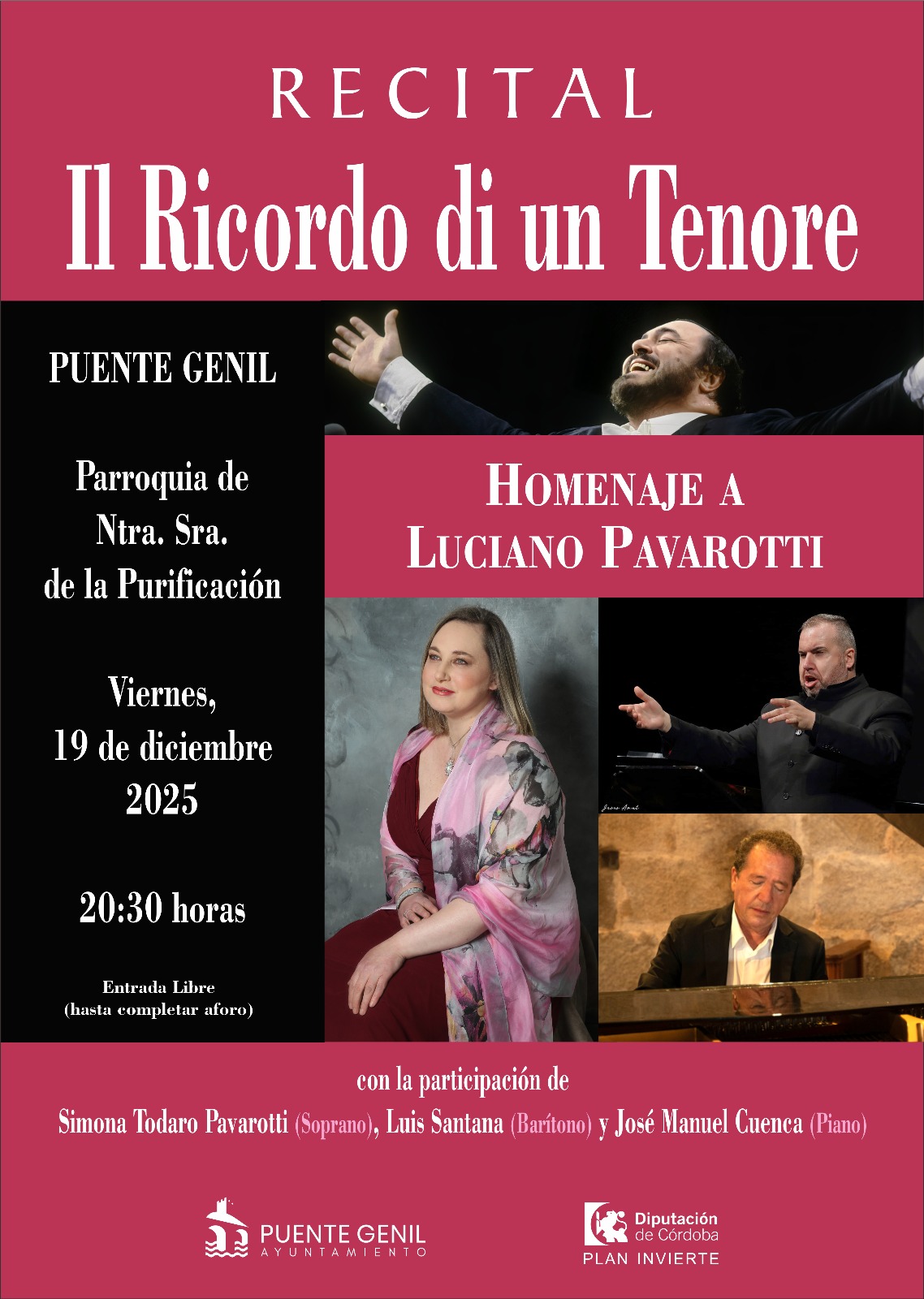 🎶✨ ¡Puente Genil se llena de música! ✨🎶El viernes 19 de diciembre de 2025 a las 20:30h, Puente Genil acoge el recital “Il Ricordo di un Tenore – Homenaje a Luciano…