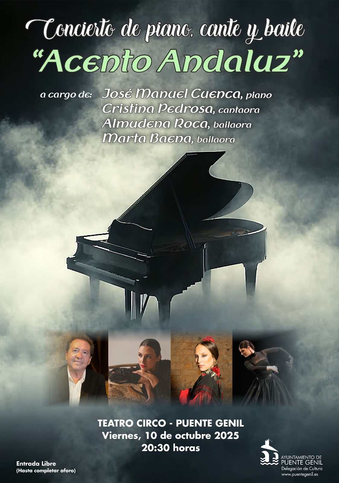 El viernes, 10 de octubre se celebrará en el Claustro del Conjunto Histórico de los Frailes el concierto "Acento Andaluz." El pianista José Manuel Cuenca, junto a la cantaora Cristina…