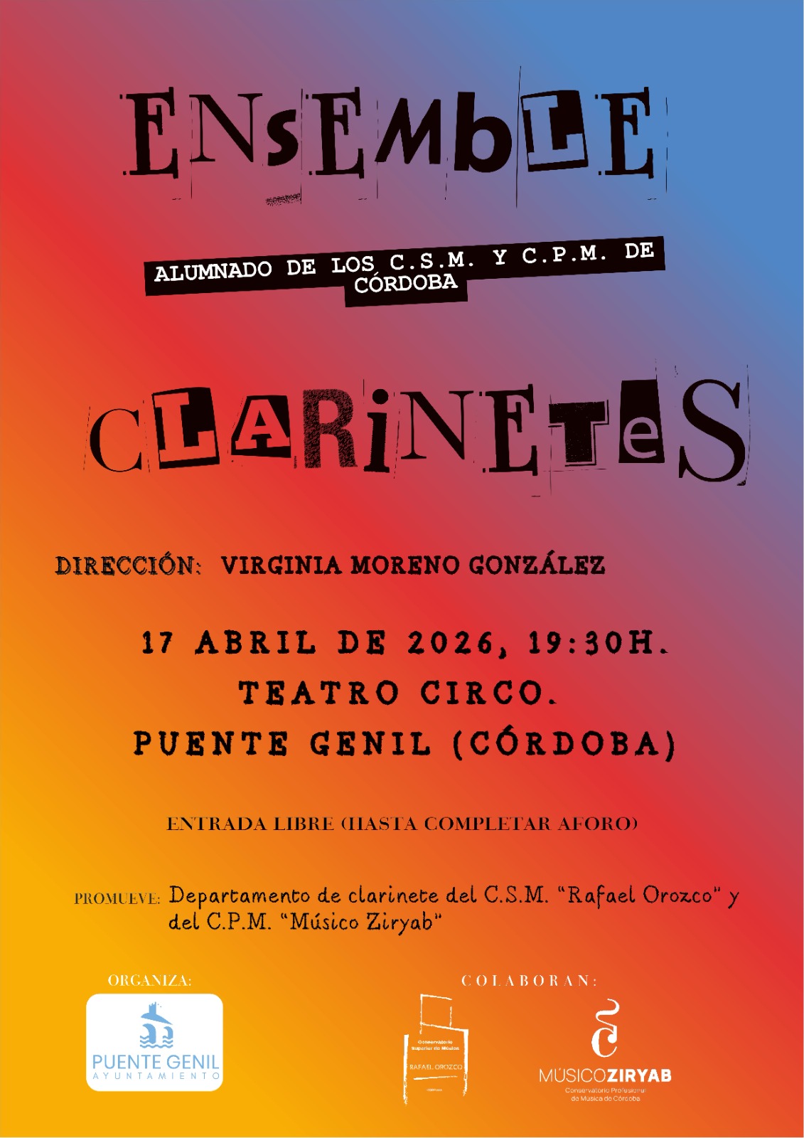 El alumnado del C.S.M. “Rafael Orozco” y el C.P.M. “Músico Ziryab” de Córdoba presenta en Puente Genil un nuevo proyecto conjunto lleno de energía, creatividad y sonido envolvente: ¡un ensemble…