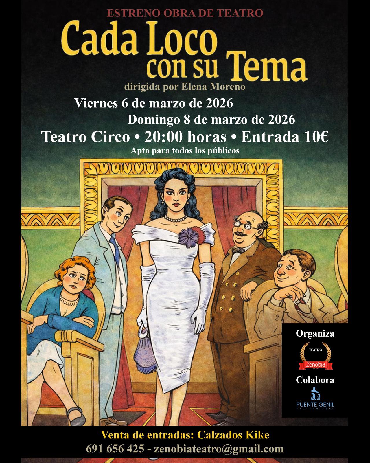 Zenobia Teatro, con la colaboración del Ayuntamiento de Puente Genil, se prepara para el estreno de su obra “Cada Loco con su Tema”, dirigida por Elena Moreno, los próximos 6…