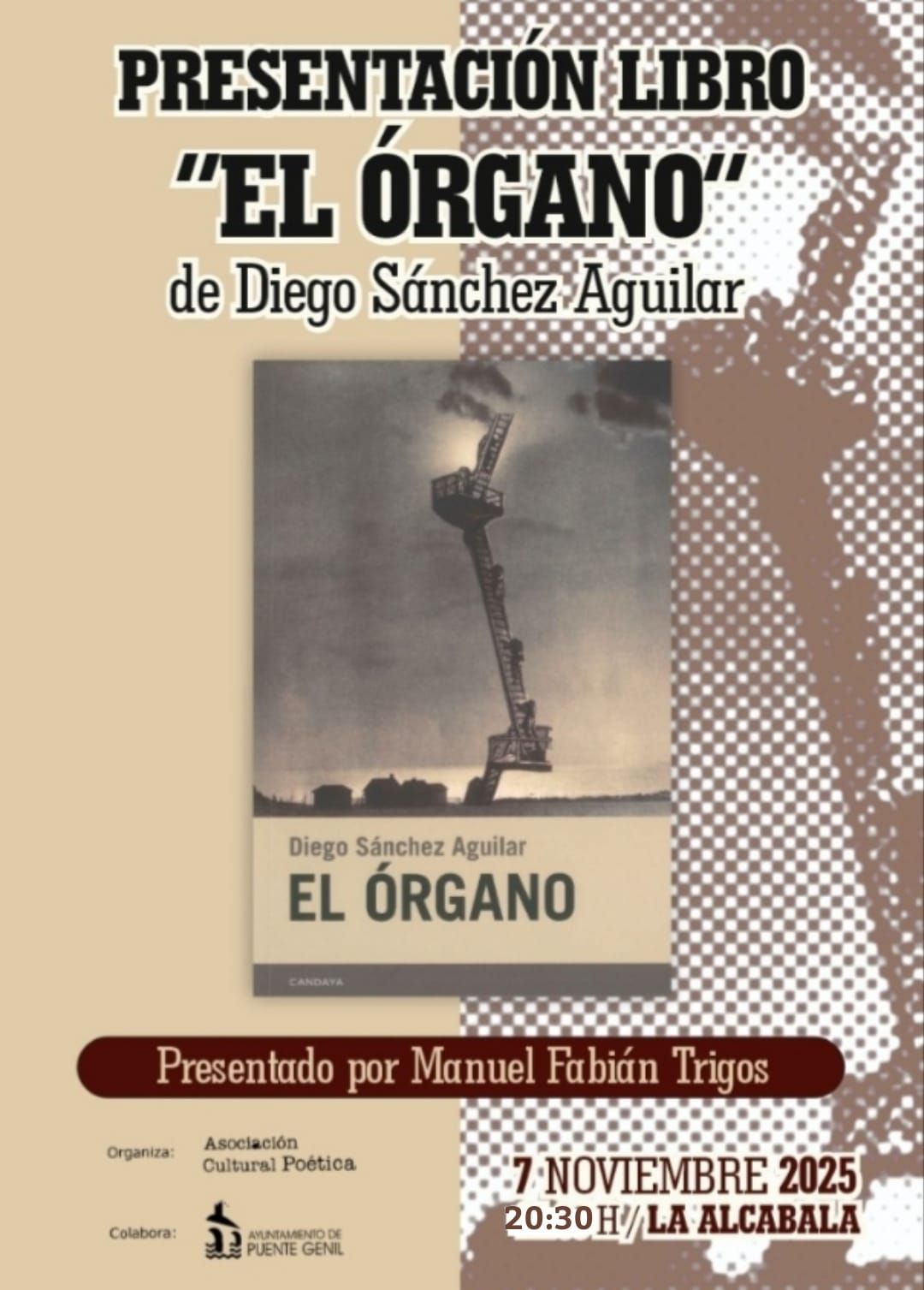 La Asociación Cultural Poética nos invita a la presentación de la novela corta " El órgano" del escritor Diego Sánchez Aguilar, en "La Alcabala" el próximo viernes 7 de noviembre.…