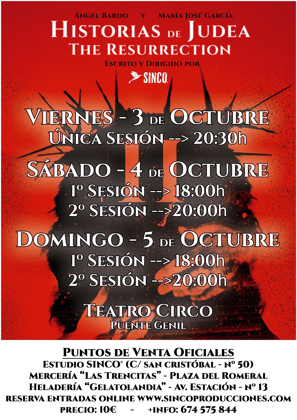 Sinco Producciones nos trae Historias de Judea II: The Resurrection al Teatro Circo de Puente Genil en su estreno el próximo viernes, 3 de octubre.