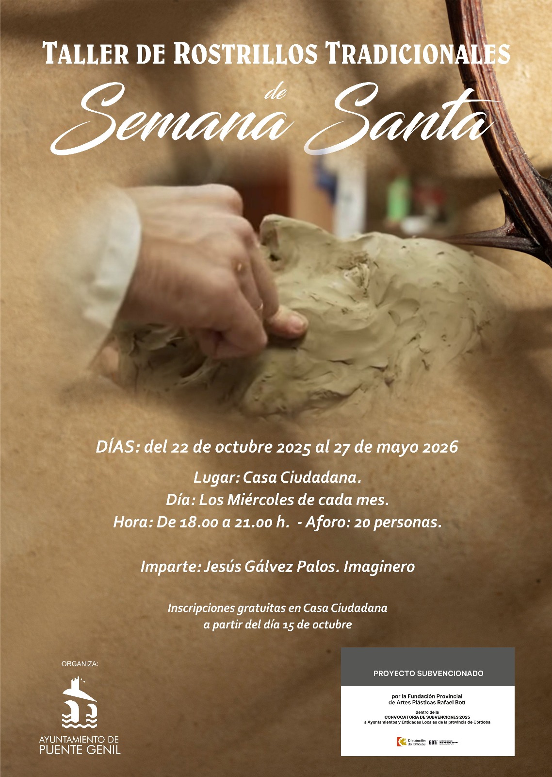 El taller, impartido por el escultor local Jesús Gálvez Palos, comenzará el 22 de octubre y se desarrollará todos los miércoles de 18:00 a 21:00 horas, con un máximo de 20 plazas.