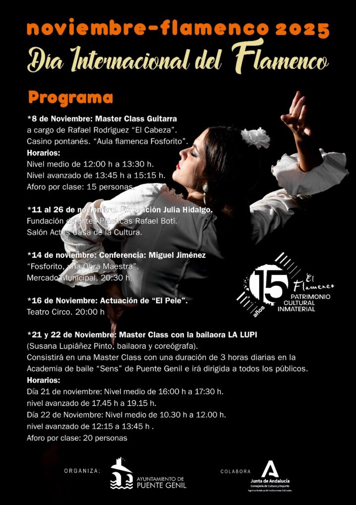 Puente Genil Town Hall has organized a full program of events to mark International Flamenco Day, which is commemorated on November 16th under the title “Flamenco November 2025.”